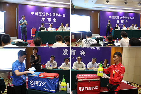 中國烹飪協(xié)會(huì)向餐飲企業(yè)代表贈(zèng)送標(biāo)準(zhǔn)文本 7月11日,中國烹飪協(xié)會(huì)團(tuán)體標(biāo)準(zhǔn)發(fā)布會(huì)在北京召開,T/CCA 001-2017《中國烹飪協(xié)會(huì)團(tuán)體標(biāo)準(zhǔn)編寫指南》、T/CCA 002-2017《“百合花”餐飲業(yè)食品安全和營養(yǎng)管理體系要求》、T/CCA 003-2017《消毒餐飲配送箱(包)》三項(xiàng)團(tuán)體標(biāo)準(zhǔn)于當(dāng)天在現(xiàn)場(chǎng)發(fā)布。中國烹飪協(xié)會(huì)會(huì)長(zhǎng)姜俊賢、副會(huì)長(zhǎng)馮恩援、拉扎斯網(wǎng)絡(luò)科技(上海)有限公司副總裁王三虎,小度信息科技有限公司公共事務(wù)副總裁莊雁斌,希悅爾(中國)有限公司高級(jí)經(jīng)理常紅勝、以及來自聚德華天、西貝、金百萬、東方餃子王等十余家企業(yè)代表和新聞媒體共同出席會(huì)議。