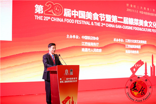 2019年11月1日,第二十屆中國美食節(jié)暨第二屆贛菜美食文化節(jié)在江西南昌綠地國際博覽中心隆重開幕。國家商務(wù)部原副部長姜增偉、中國飯店協(xié)會會長韓明、江西省商務(wù)廳黨組書記、廳長劉翠蘭、南昌市人民政府副市長李松殿等出席開幕式。